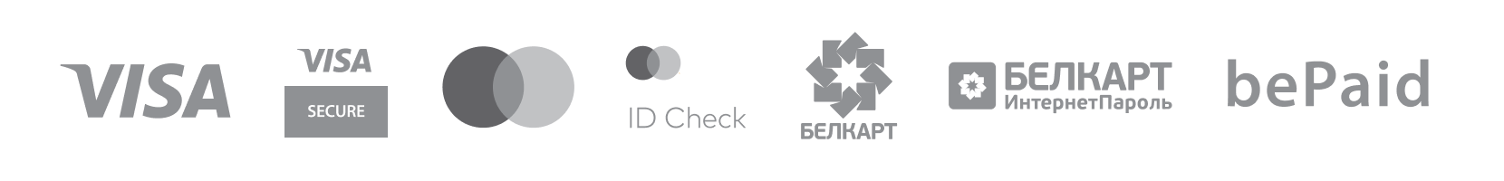 Мы принимаем платежи по следующим банковским картам: Visa, Visa Electron, MasterCard, Maestro, Белкарт, МИР: